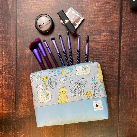 Blue & Yellow Cats Large Zipper pouch