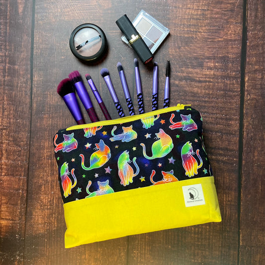 Cosmic Cats Large Zipper pouch - yellow