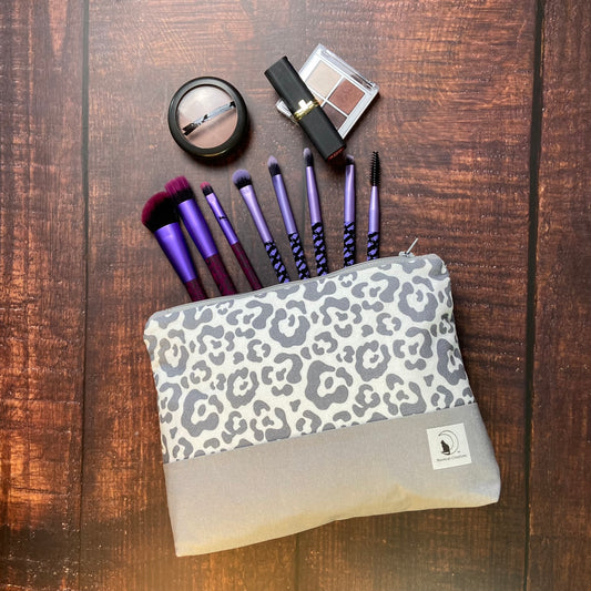 Gray Leopard Large Zipper pouch