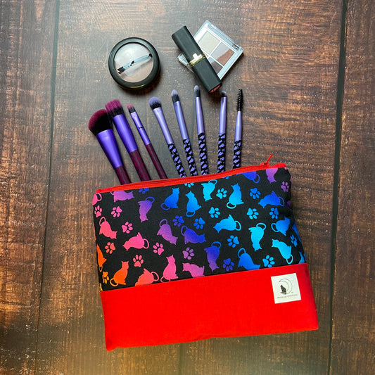 Rainbow Cats Large Zipper pouch - red