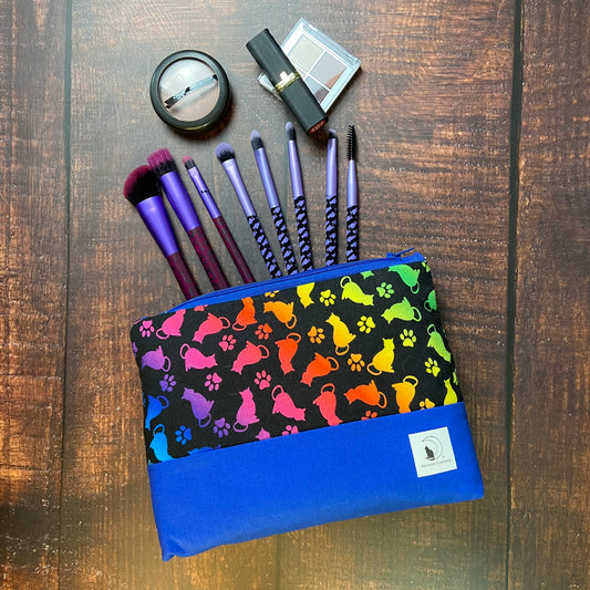 Rainbow Cats Large Zipper pouch - blue